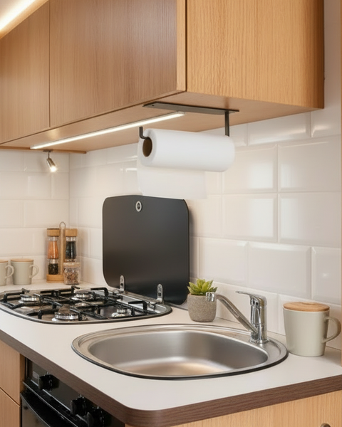 🧻 Robust og stilren kjøkkenpapirholder i metall – perfekt for bobil, campingvogn eller hjemme!